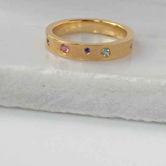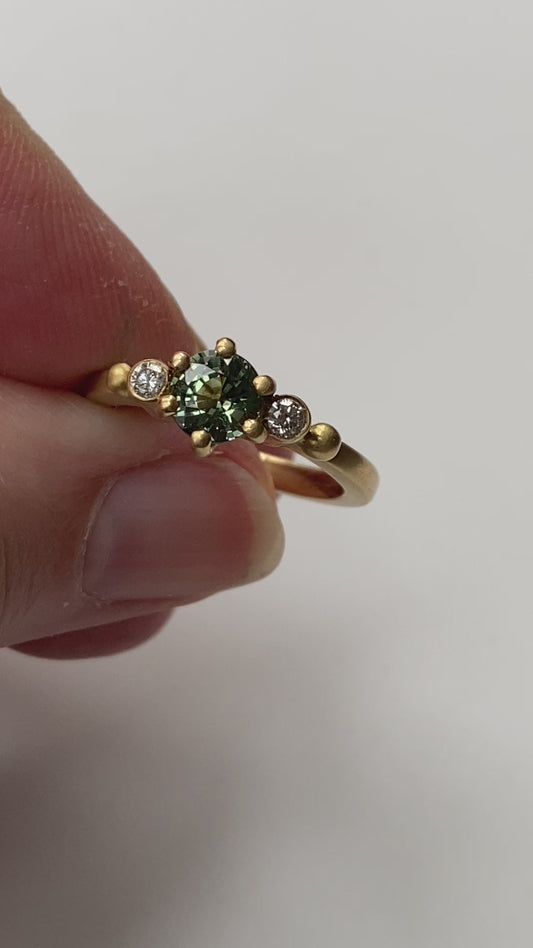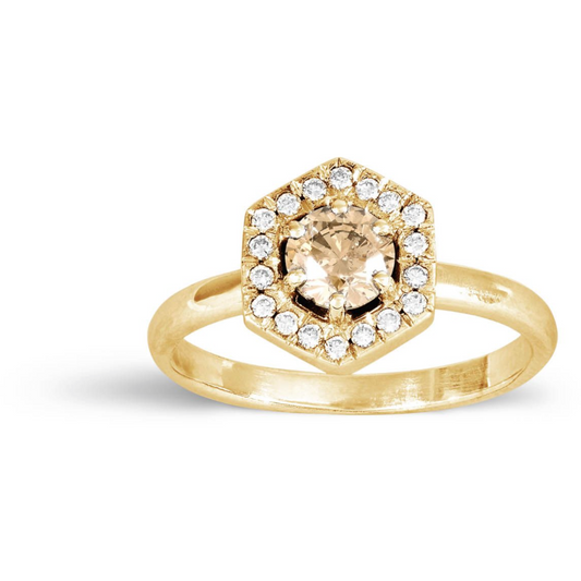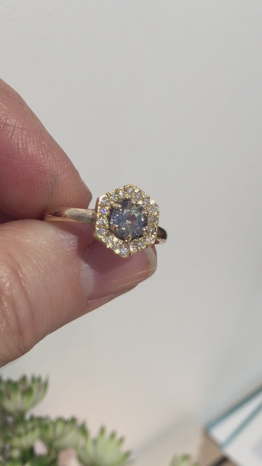 Teal Sapphire & Diamond Hexagonal Gold Ring