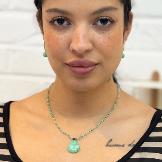 Chrysoprase Knotted Teardrop Pendant