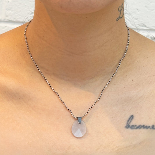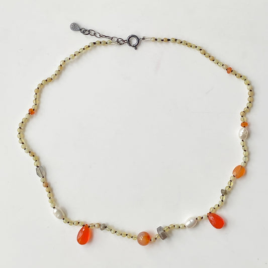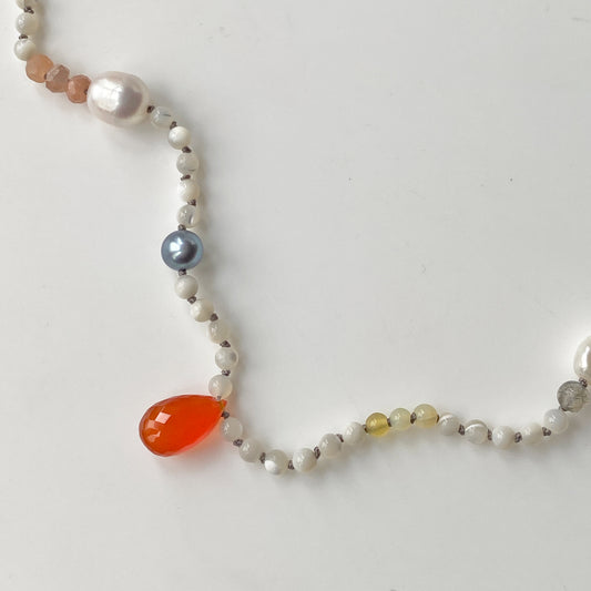 Zircon & Grey Moonstone Knotted Necklace